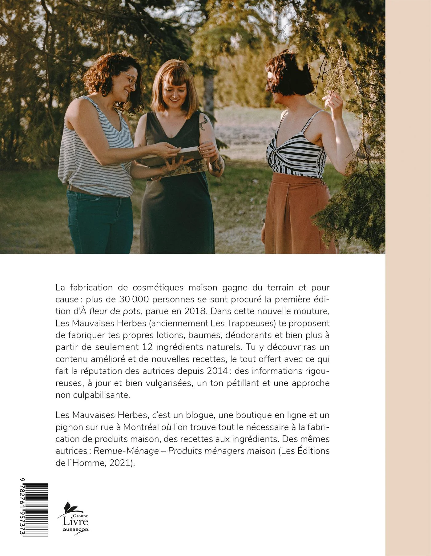 Cette réédition de À fleur de pots: petit grimoire des cosmétiques maison des Trappeuses rassemble encore plus de recettes, te liste les ingrédients en volume et en poids et t’offre du contenu étoffé te permettant de créer tes cosmétiques sur mesure.