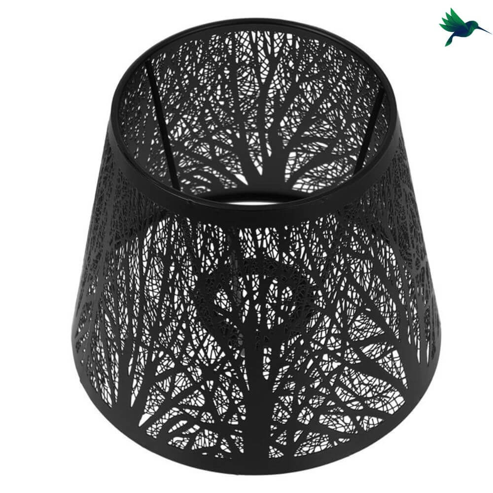 Cet abat-jour métallique, de coloris noir, a un design vraiment élégant. En effet, ce style d’abat-jour ajouré permet d’avoir un objet moderne et tendance. Le fer représente les branches entrelacées des arbres. Pour une touche naturelle et exotique, il peaufinera votre décoration Jungle. Vous serez surpris de voir comment il ajoutera quelque chose de spécial à votre intérieur. Et peu importe la pièce : salon, séjour, chambre, couloir… Son design unique en tissage métallique donne un look moderne.