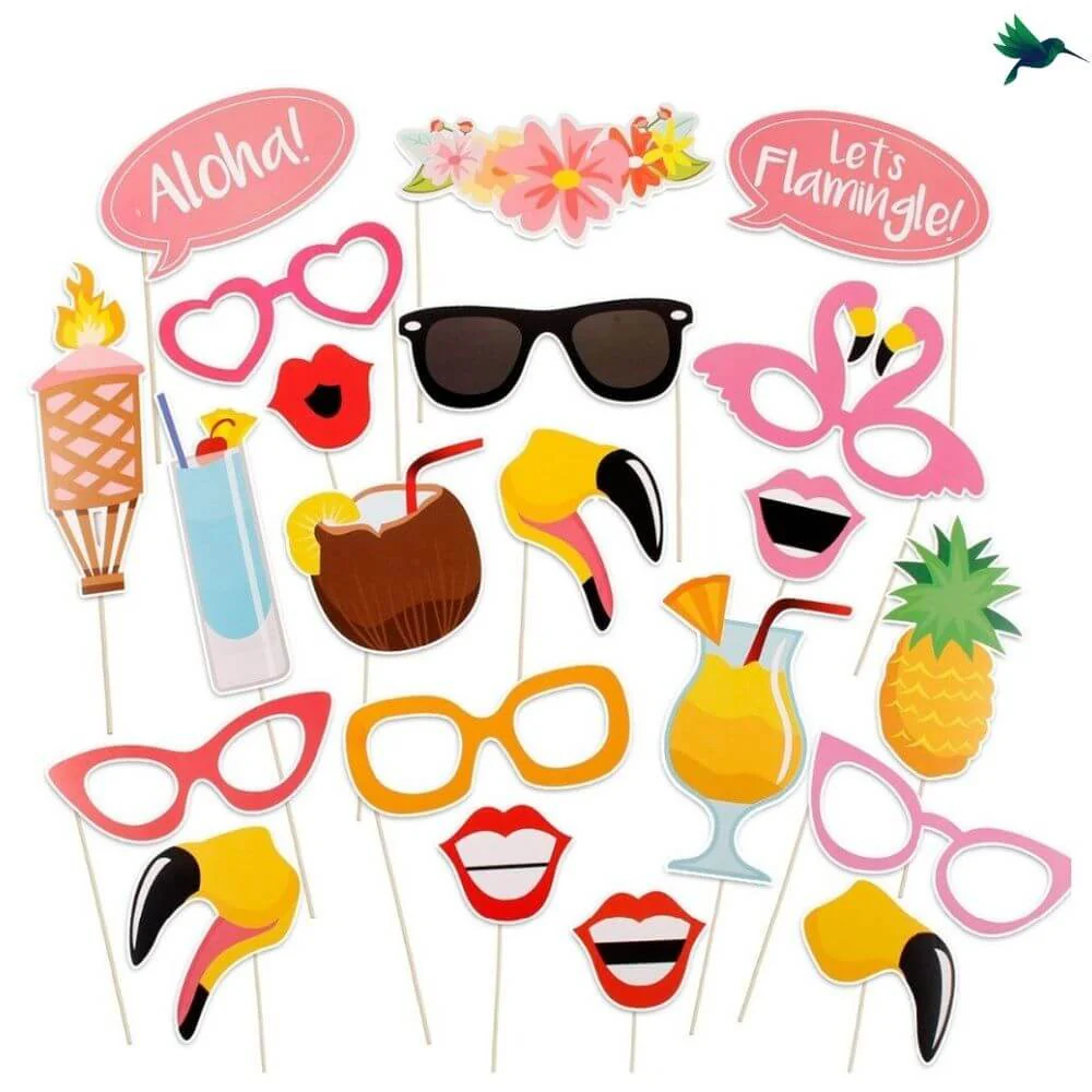 Ces accessoires de photomaton sont le complément parfait. Ce lot d’accessoires photos est la meilleure façon de personnaliser votre fête d’anniversaire tropical.