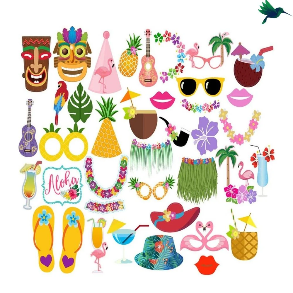Ils permettront à vos invités de s’amuser et de faire des photos mémorables. Ces accessoires de fête conviennent pour un anniversaire à thème Aloha, Tropical, Exotique, Hawaïen…