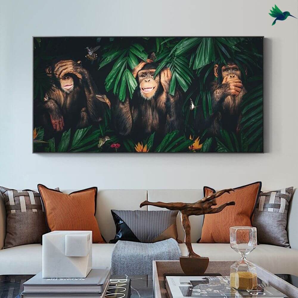 Vous recherchez une Affiche Jungle originale? Découvrez celle-ci représentant les 3 Singes de la Sagesse.