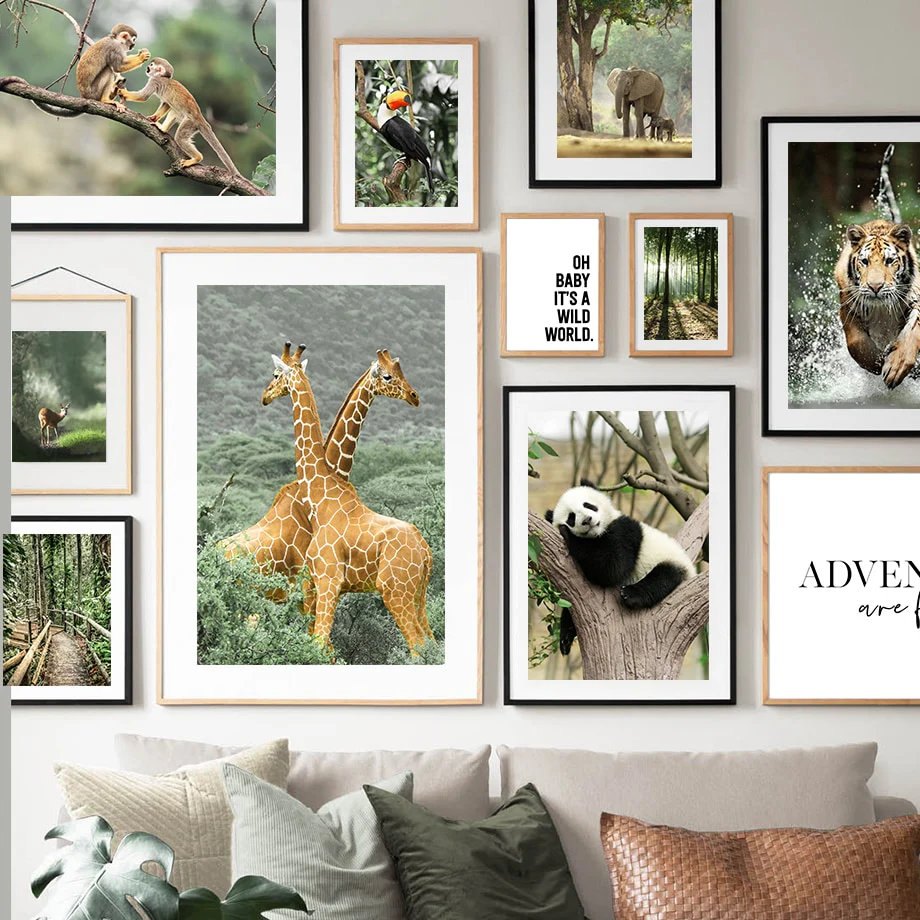 Transformez votre salon en une véritable jungle enchantée avec notre gamme d’Affiche Jungle Animaux Forêt.