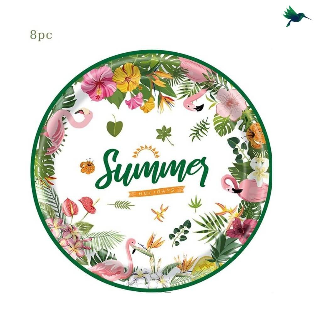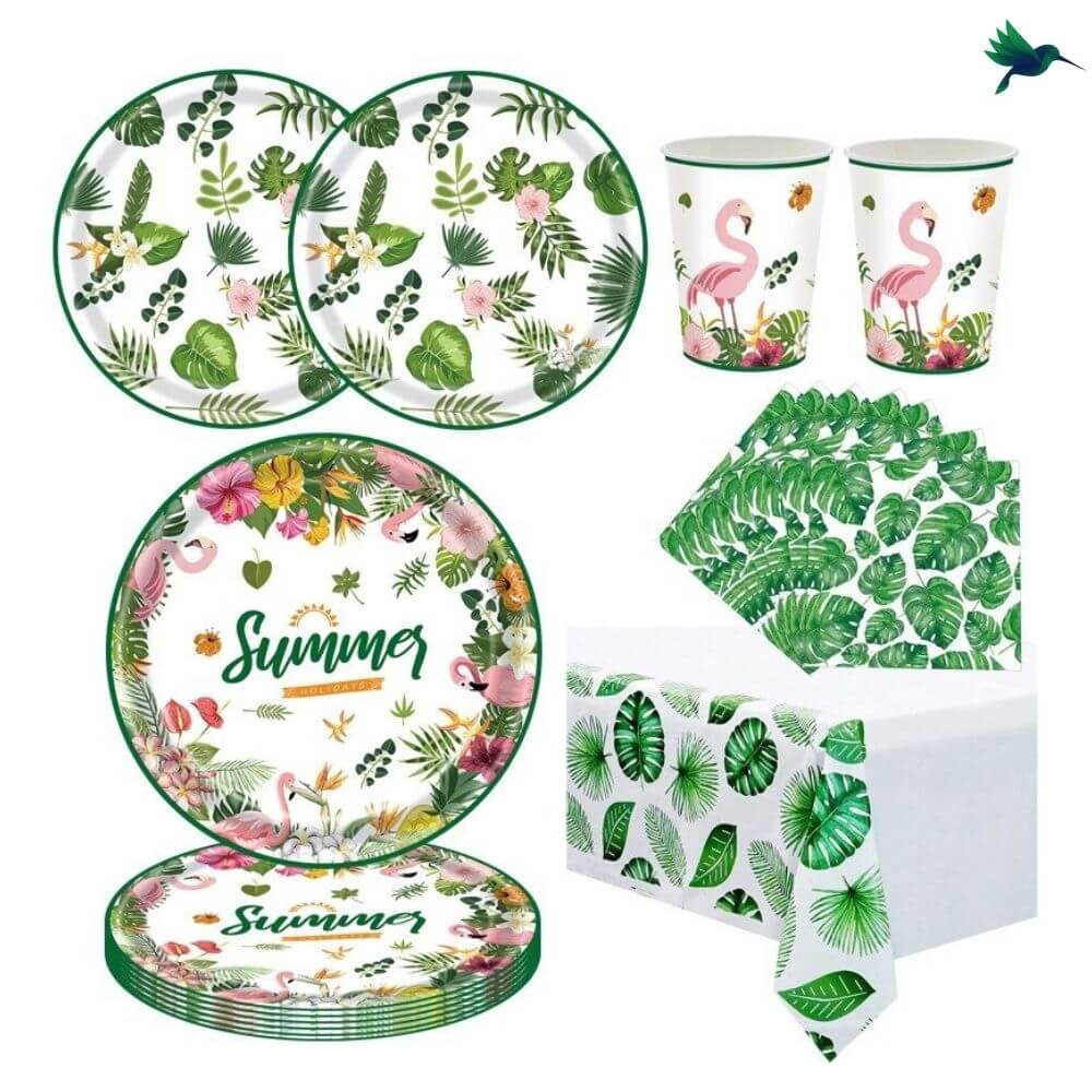 Vous êtes à la recherche d’une vaisselle fun, colorée et festive pour votre fête anniversaire ? Ne cherchez plus ! Voici notre gamme de vaisselle jetable à thème tropical. On adore ces motifs de feuillages tropicaux, de fleurs exotiques, de flamant rose, d’ananas…. Ces motifs évoquent clairement le soleil, les tropiques, l’évasion, les cocktails…