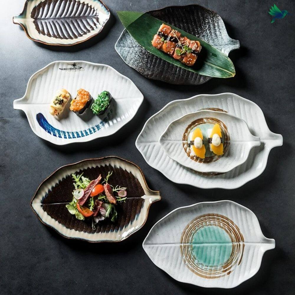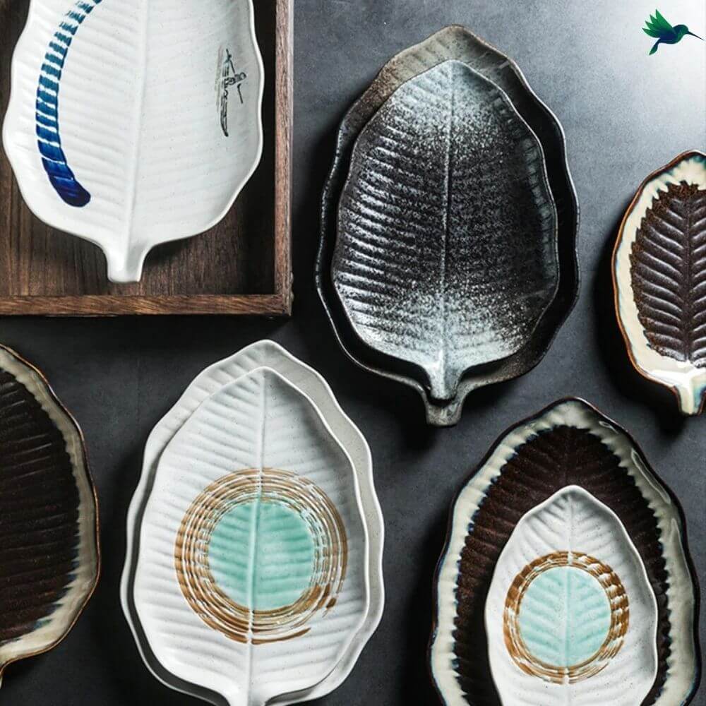 Au-delà de sa forme, les nervures de la feuille sont élégamment représentées. Certaines comportent aussi des motifs décoratifs ou sont bicolores afin d’avoir un design travaillé et une vaisselle moderne et exotique.