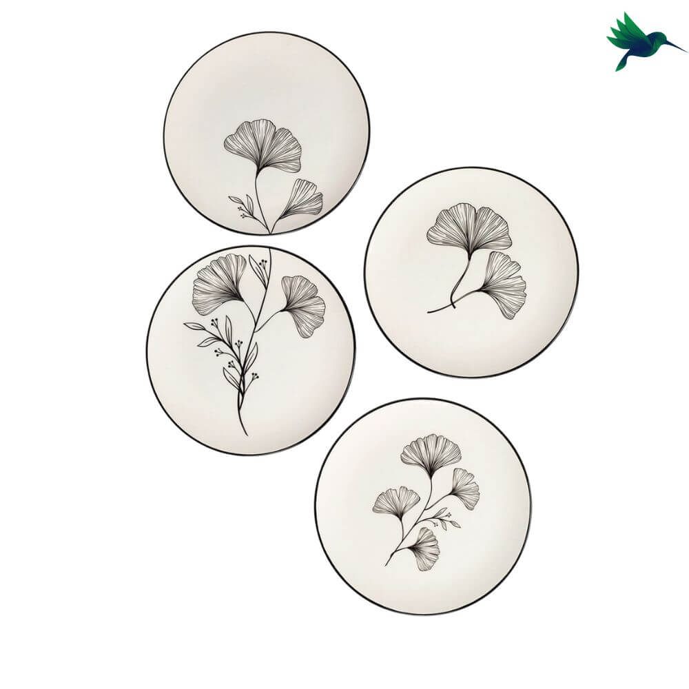 Ce lot d‘Assiettes motif Ginkgo de coloris noir et blanc est superbe.