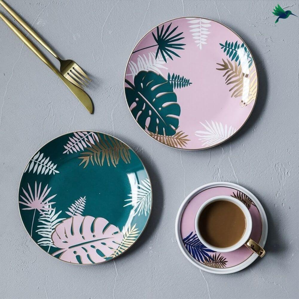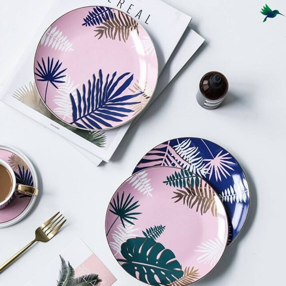 Les assiettes style Tropical avec leur couleur et leur design apportent une touche festive et exotique à n’importe quelle table. En effet, ce style aux motifs colorés égayera tous vos repas. Vous pouvez les utiliser quotidiennement ou bien lors d’un dîner entre amis.