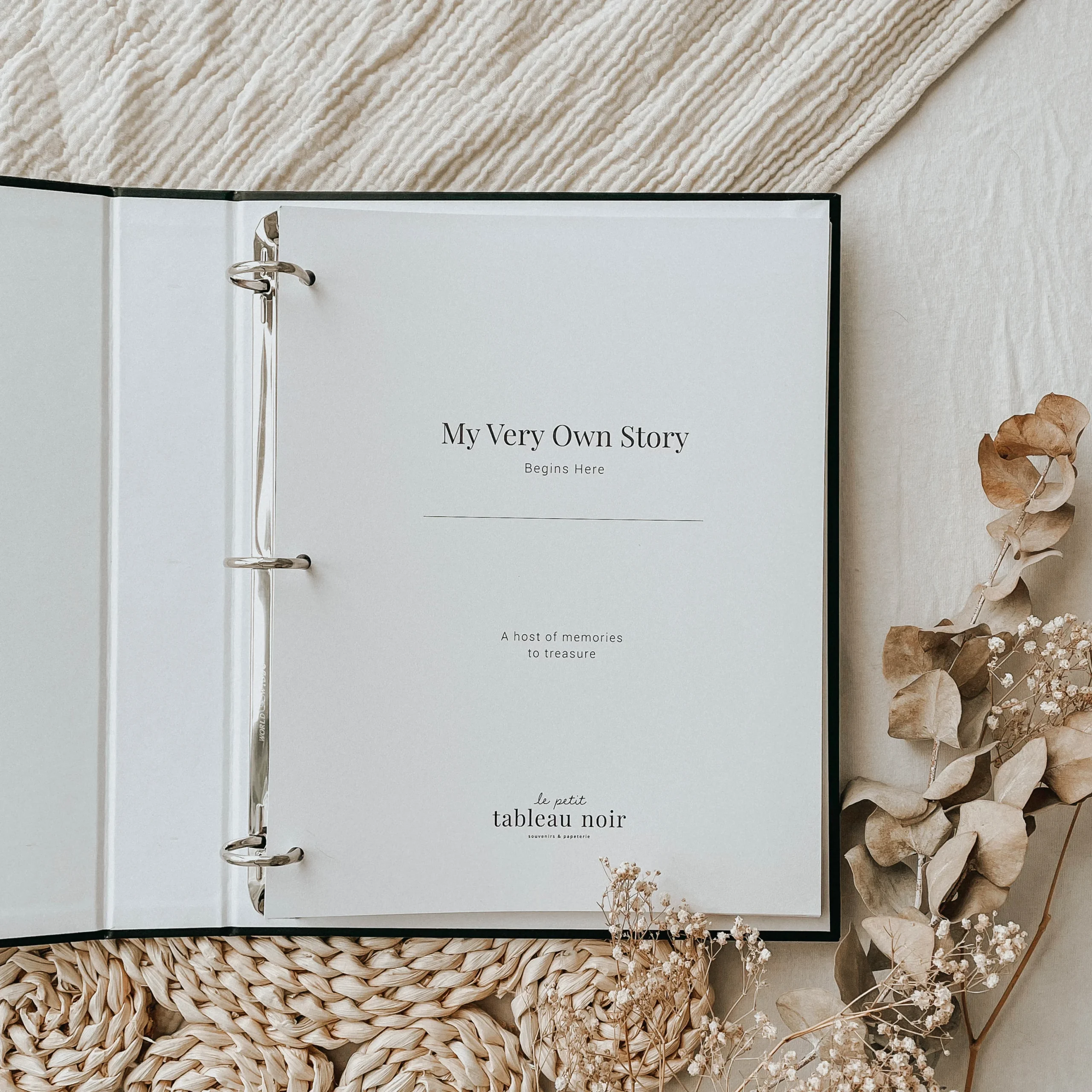 A book filled with first times, laughter, sweet moments… and maybe a few grouchy ones! But, most importantly, with lots of love. Keep those precious memories, from pregnancy to their first birthday. > Ring binder > Extra thick cardboard cover with a matte finish with anti-scratch lamination > Épine de 1.5″ de haut > Size: […]