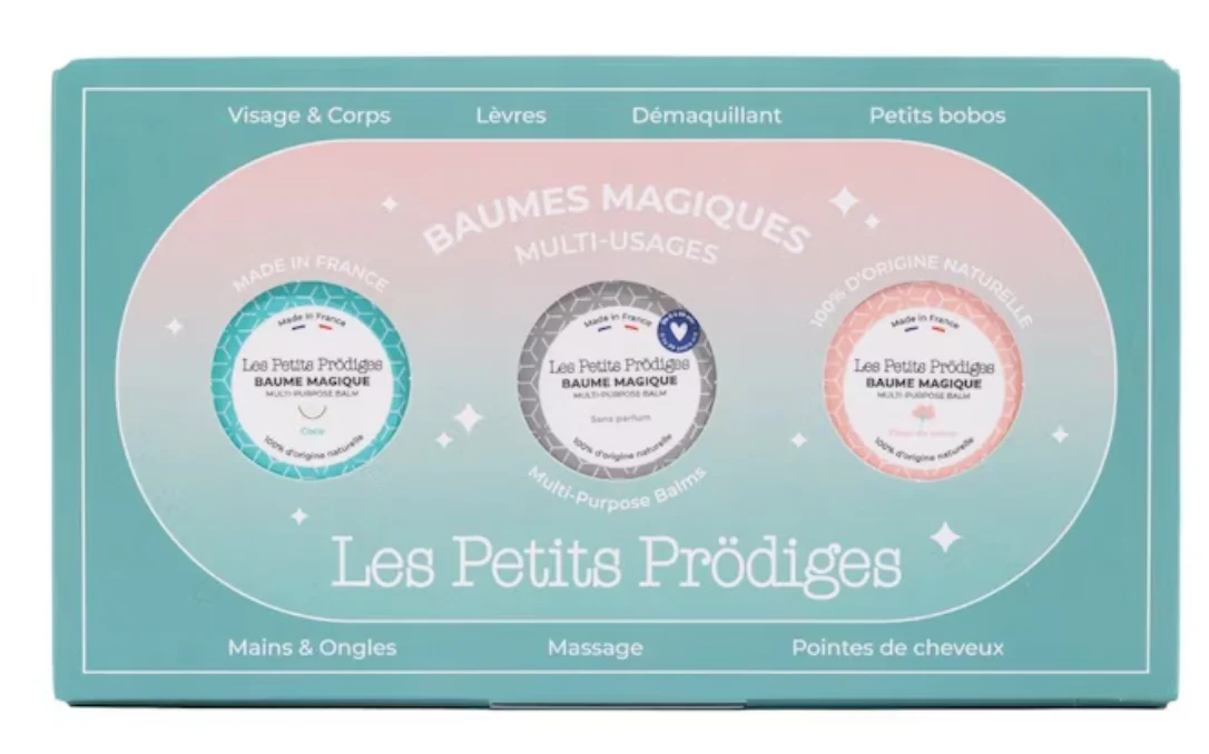 Laisser-vous émerveiller par la magie des Baumes Magiques réunis dans un coffret ! Composé de seulement 8 ingrédients 100% d’origine naturelle, ces baumes résument à eux seuls toute votre routine beauté : il nourrit, apaise et protège visage, corps, pointes de cheveux et plus encore… C’est également un excellent démaquillant ! Ce coffret contient 3 Baumes Magiques déclinés dans les senteurs best-sellers, Sans Parfum, Fleur de Coton et Coco en taille nomade (10ml) à emporter partout. Idéal pour offrir ou tout simplement se faire plaisir !