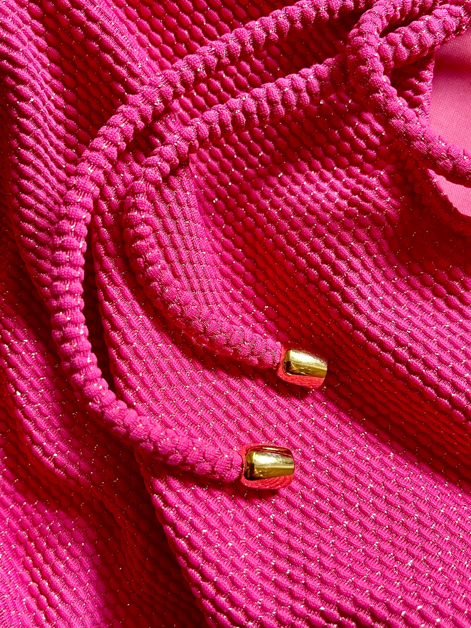 Bikini fille, tissu piqué framboise / or
