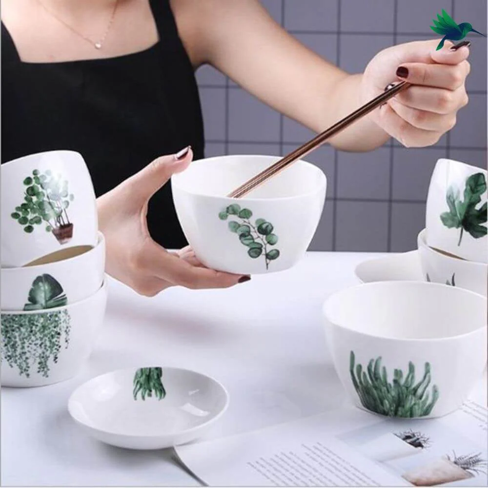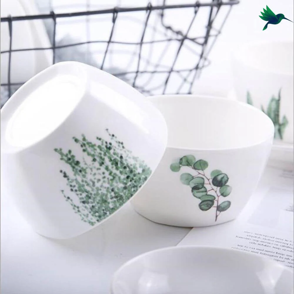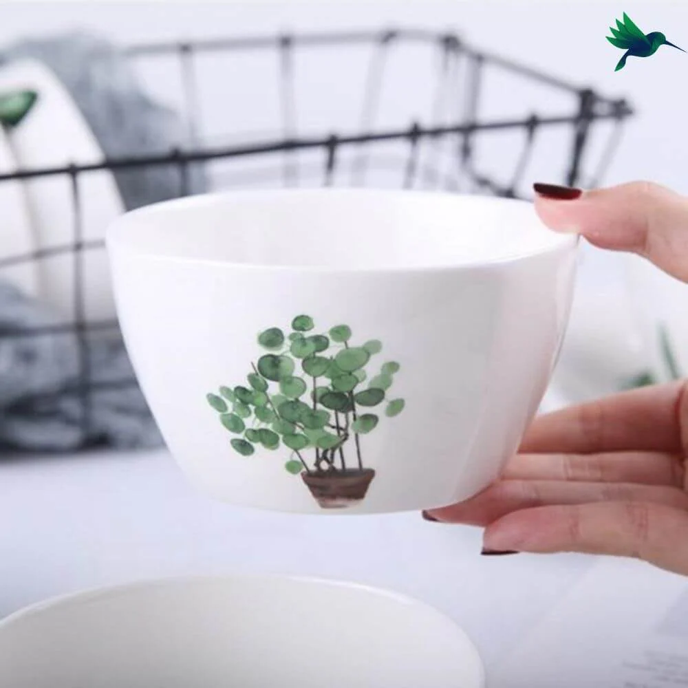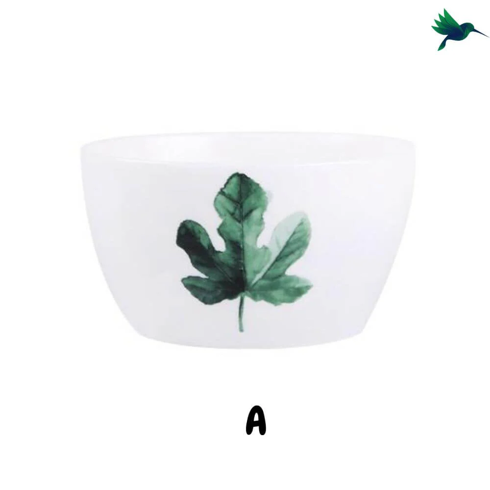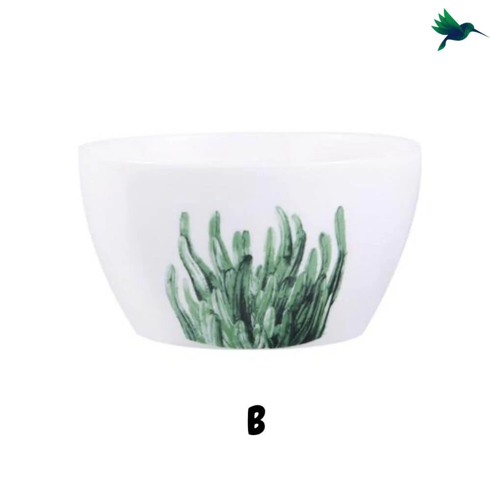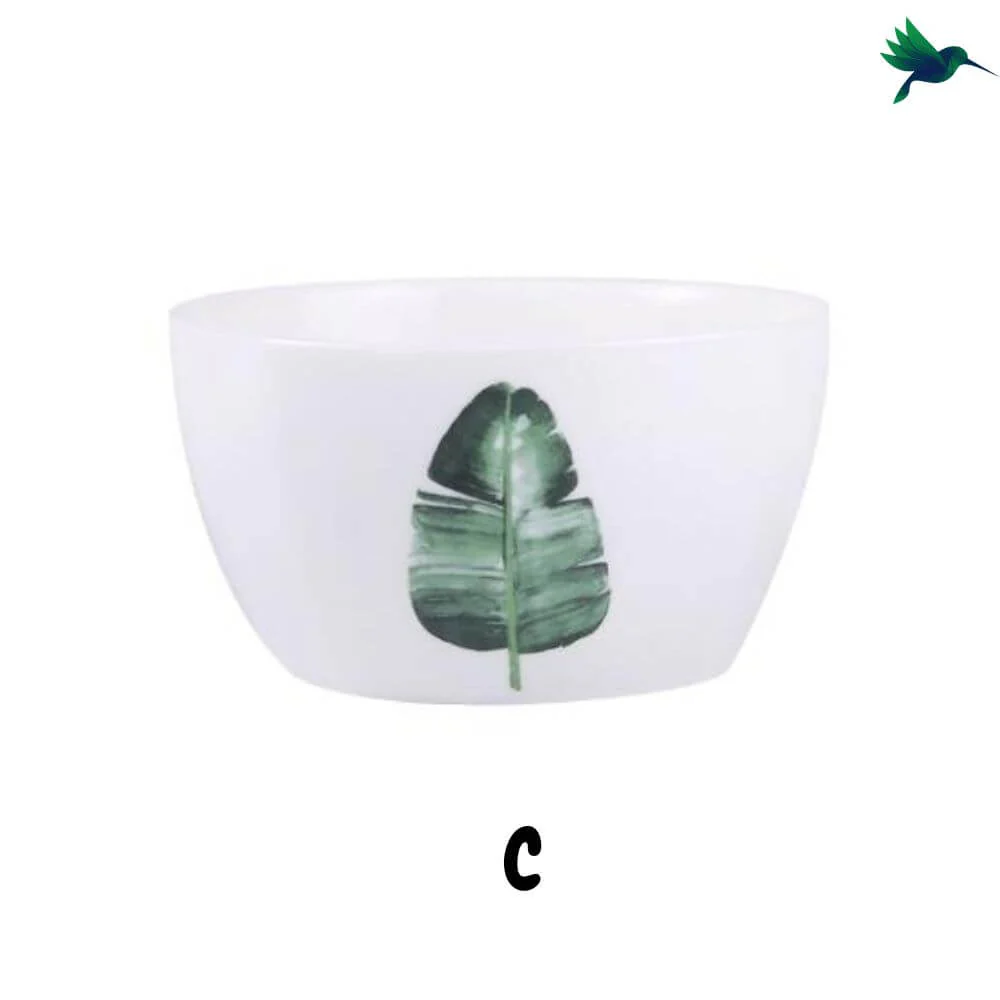 Ce bol blanc avec un motif tropical minimaliste s’associera facilement avec votre vaisselle. Ce motif de feuilles, de plantes tropicales apportera un peu de verdure à votre tablée. Nous mettons à votre disposition 7 modèles avec des imprimés végétaux variés: cactus, feuille de bananier, eucalyptus, plantes tropicales…