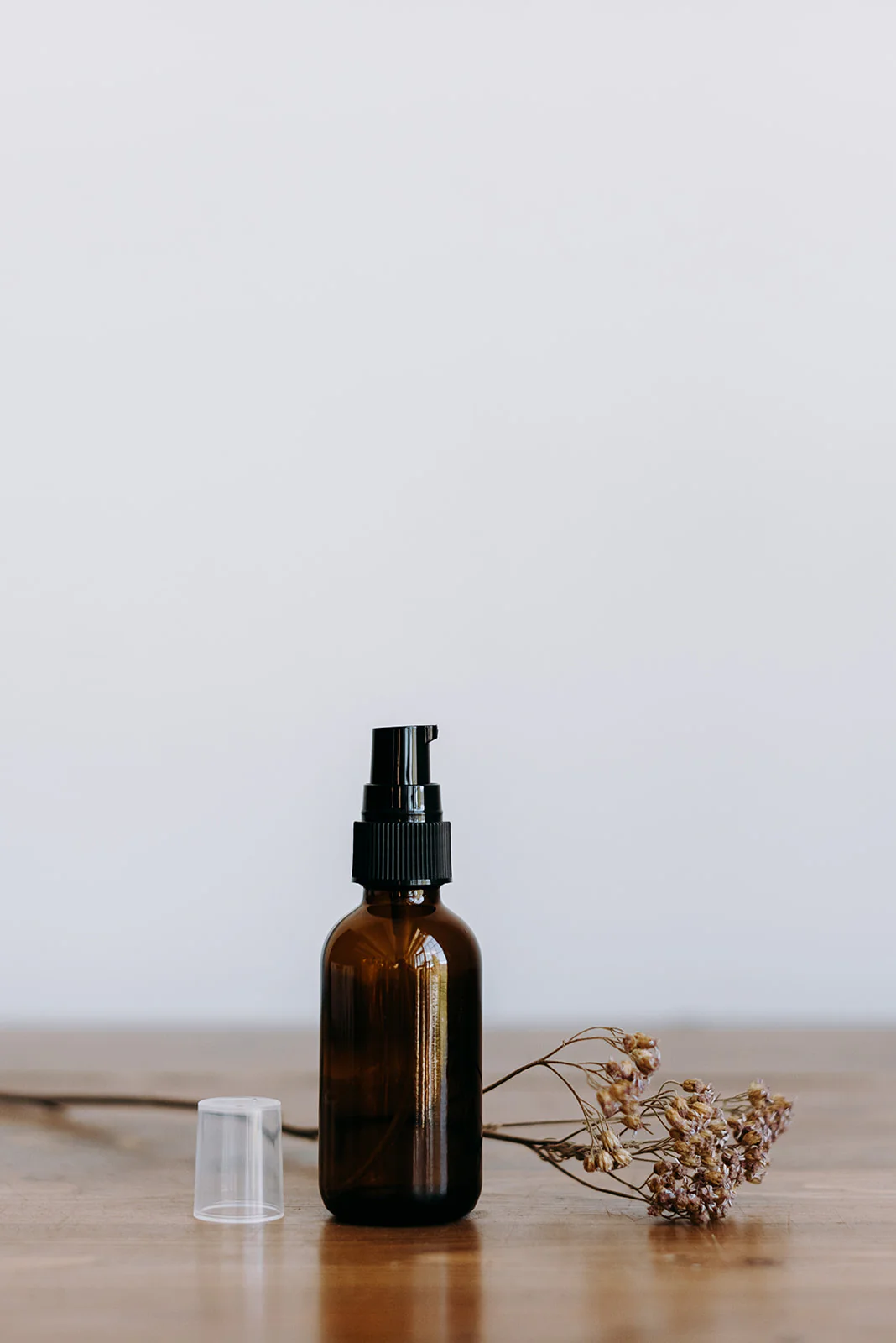 Bouteille en verre ambré et à pompe noire de type treatment pump. Aussi disponible en formats de 30 ml (1 oz) et 125 ml (4 oz). Spécifications Composition: verre ambré et plastique Provenance: Chine