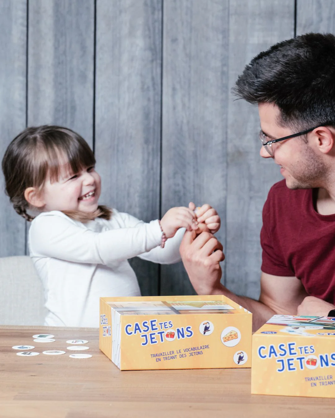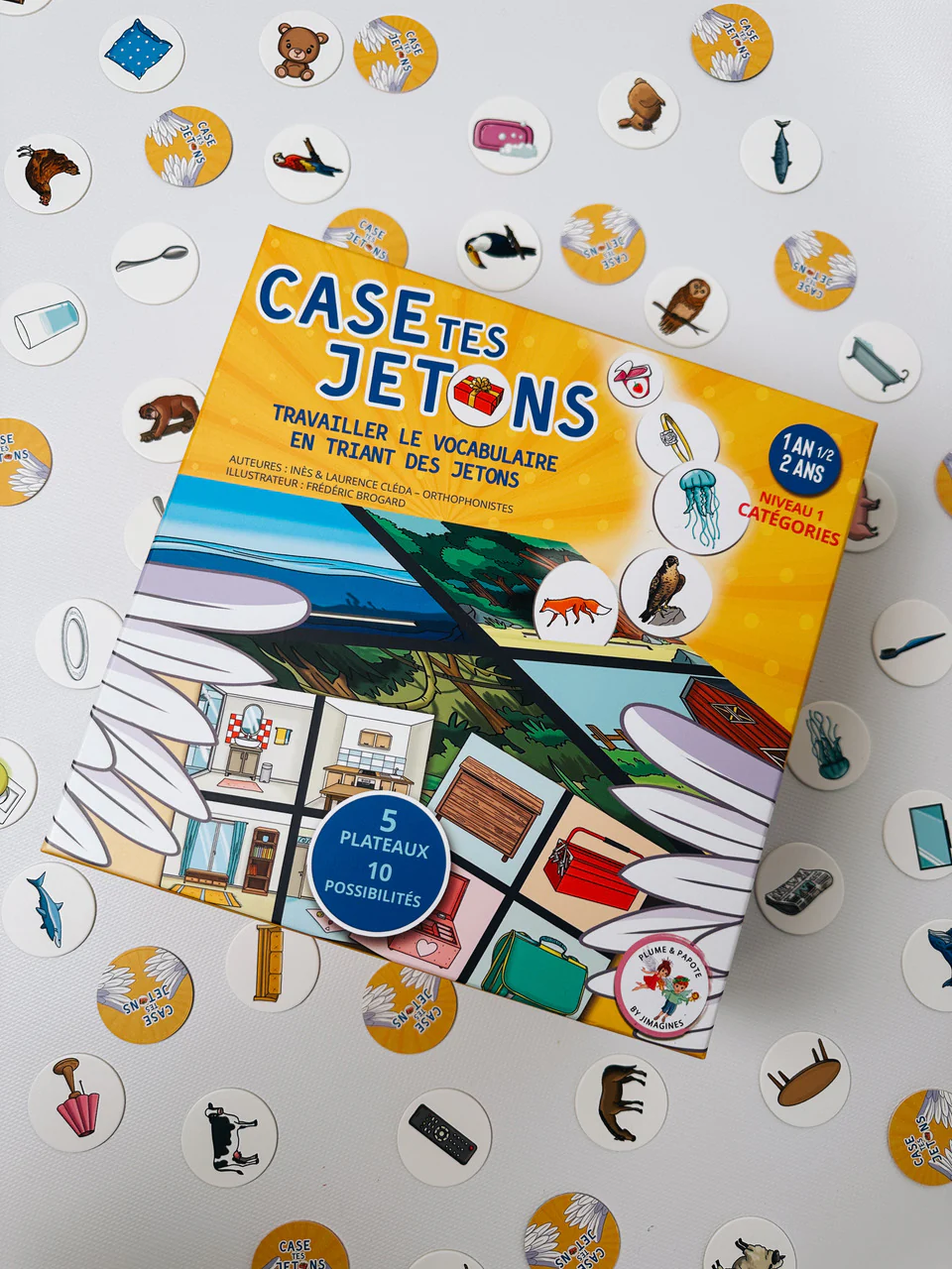 Principe : on choisit un plateau → on trie les jetons dans les bons compartiments → on valide et on recommence !