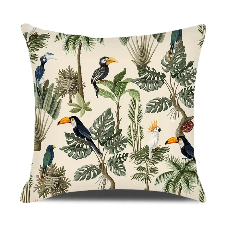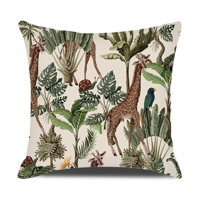 Vous voulez du nouveau linge de maison pour pimenter votre salon ou votre chambre? Cette housse de coussin est parfaite pour vous. Profitez de la sensation de dormir dans une jungle verdoyante avec une faune exceptionnelle.
