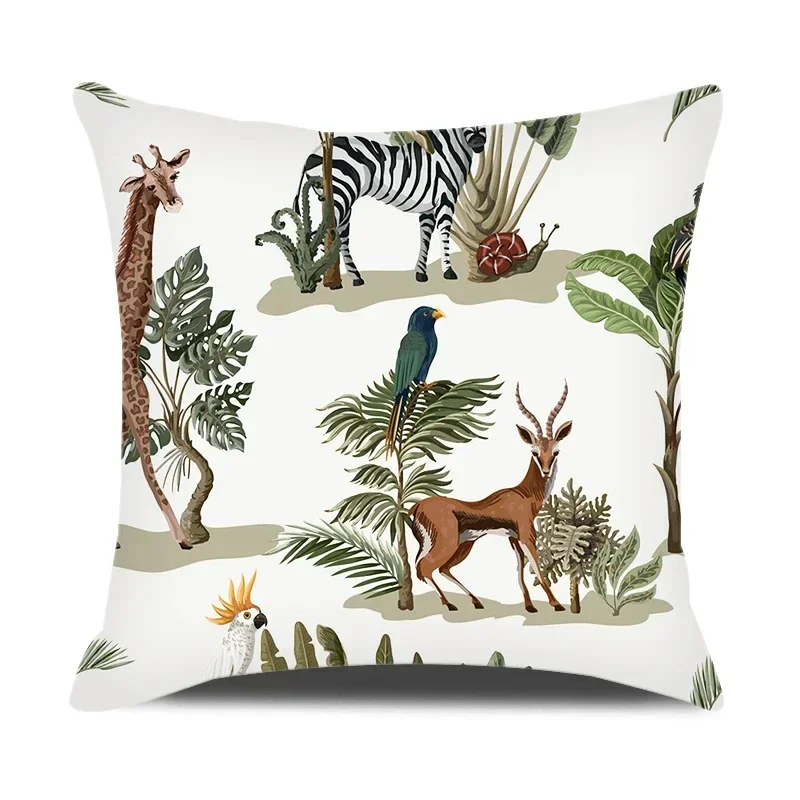Cette housse de Coussin représentant les Animaux de la Jungle aura fière allure n’importe où dans votre maison.