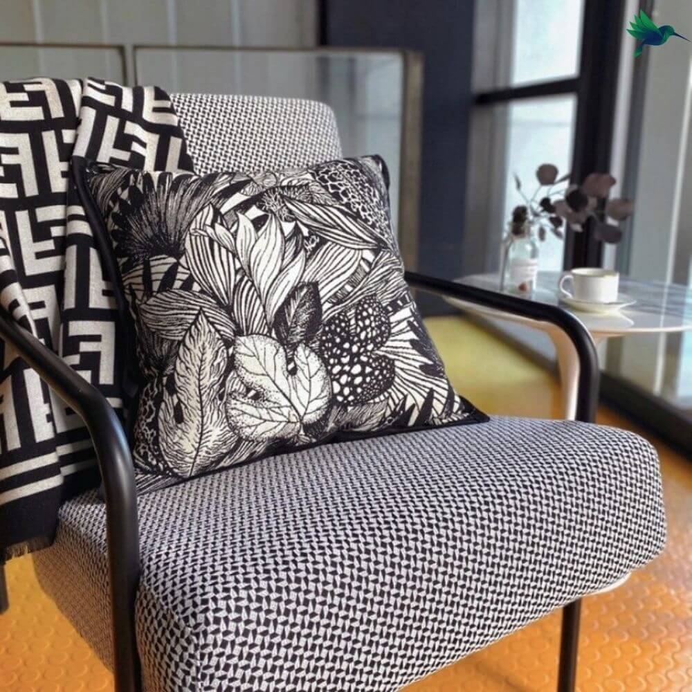 Design unique et soigné, découvrez notre nouvelle housse de Coussin au Feuillage Noir et Blanc.