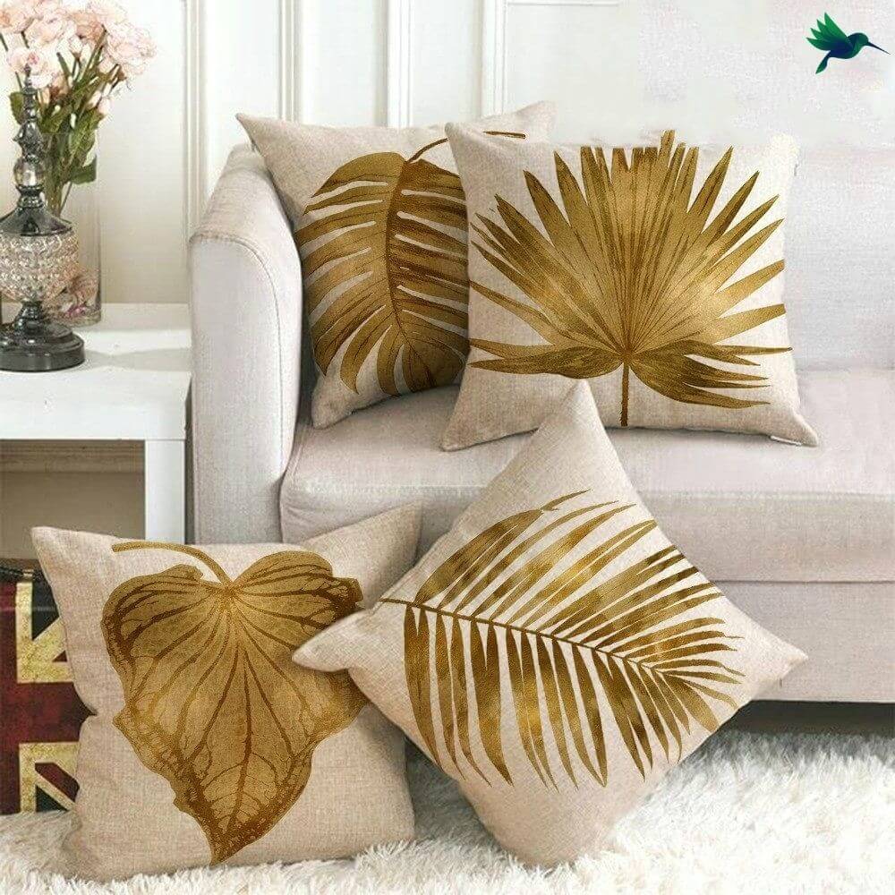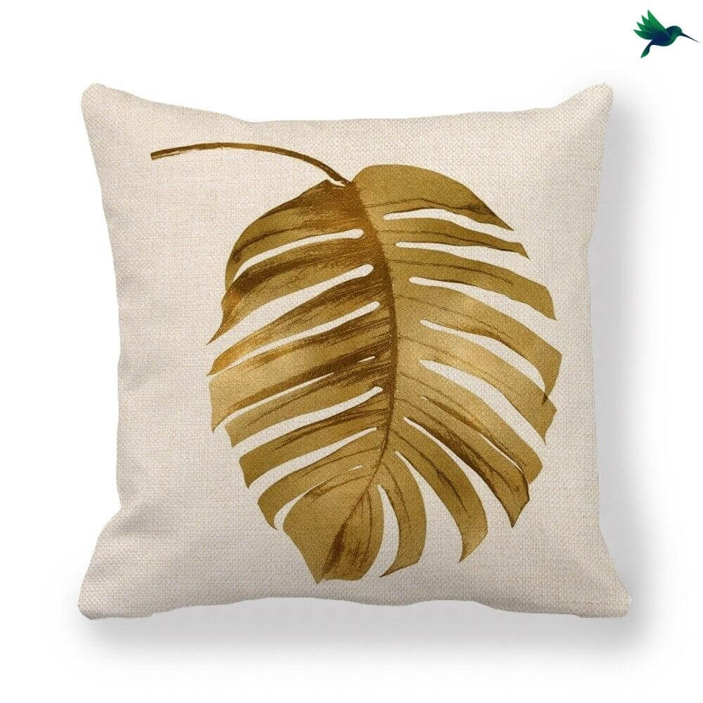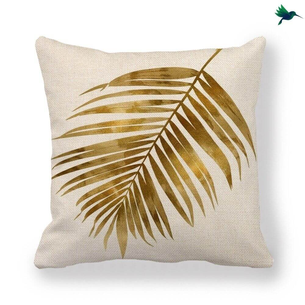 Peaufinez votre décoration exotique avec cette housse de coussin Feuille Dorée.