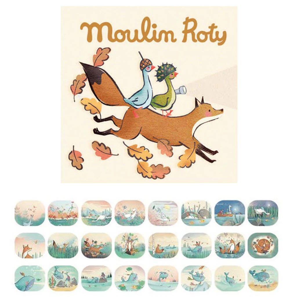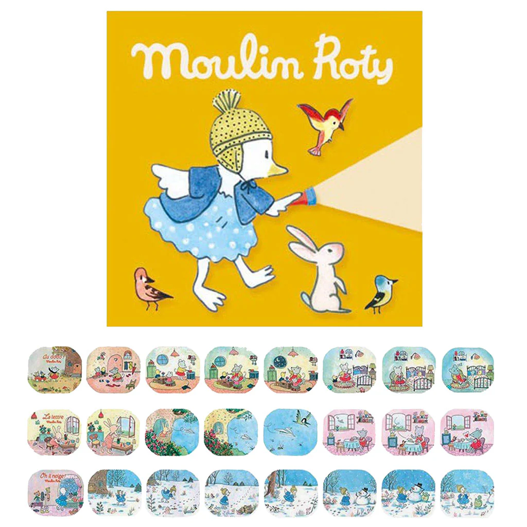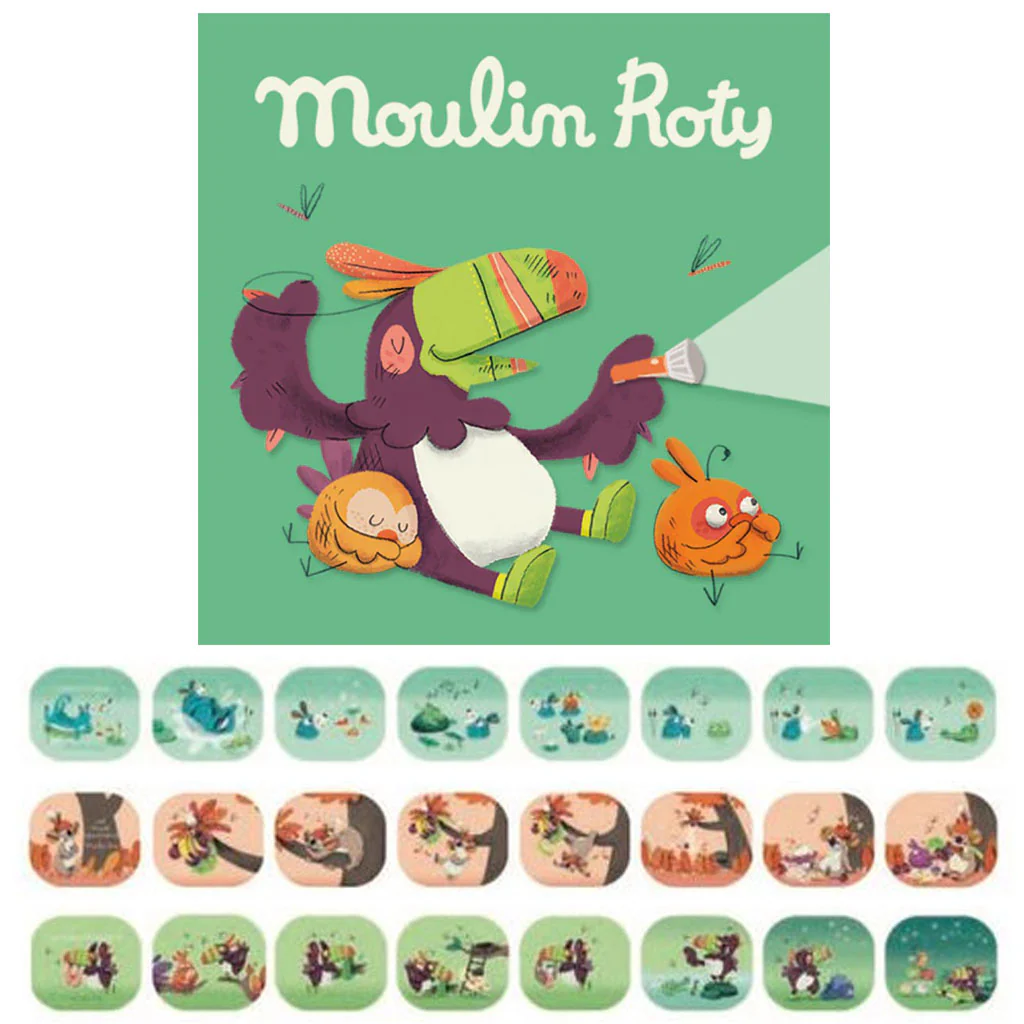 Si vous avez déjà une lampe à histoires, vous pouvez vous procurer de nombreuses autres histoires sans racheter une lampe-torche. Chaque boîte de recharge contient 3 disques à histoires, que votre enfant projettera sur son mur à la tombée de la nuit. Pour continuer à voyager avec les images.