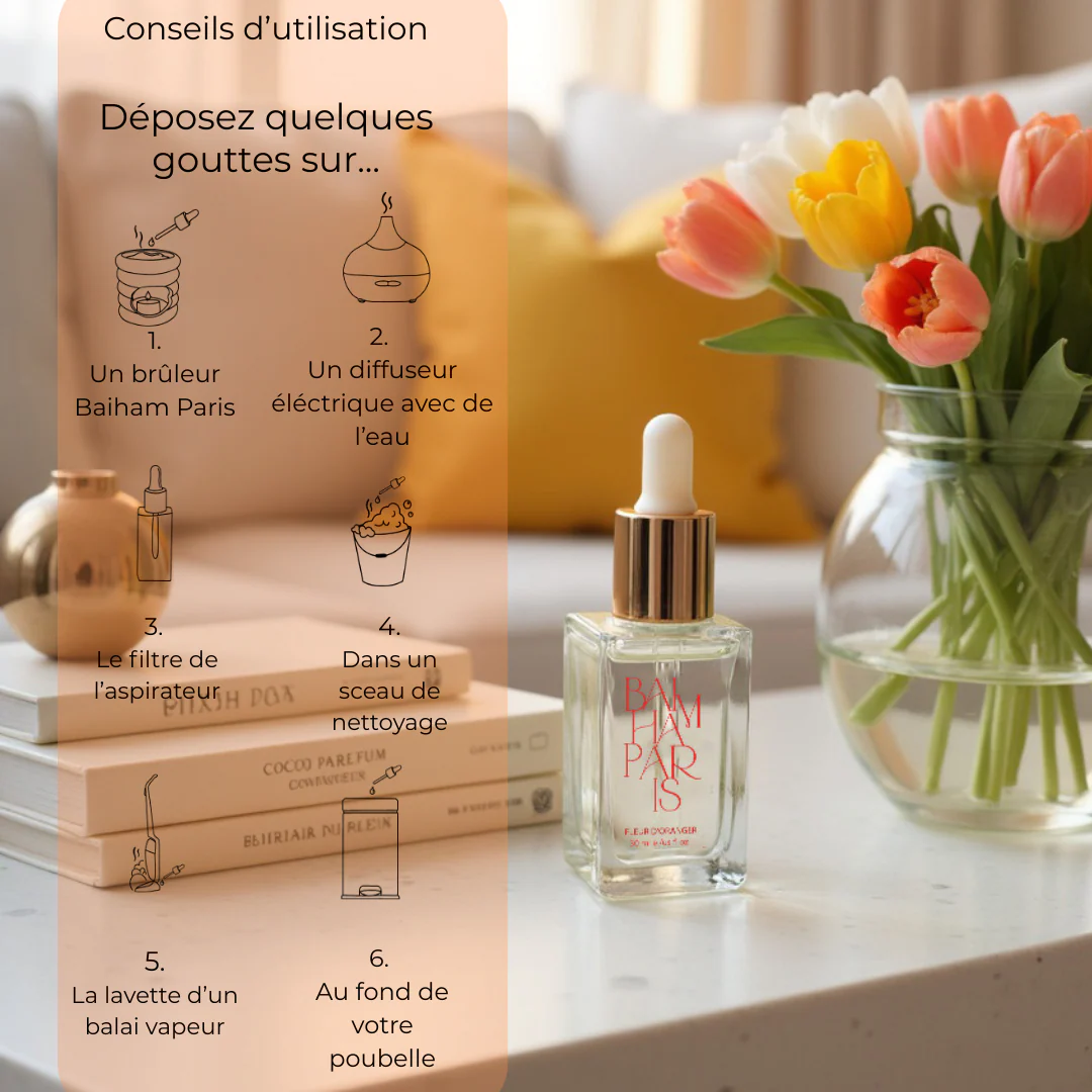 Nos élixirs de parfum sont également économiques. Ils sont conçus pour être utilisés à long terme puisque qu’un flacon de 30 ml peut tenir entre 1 et 3 mois selon l’utilisation que vous en faites. Vous pouvez en utiliser quelques gouttes pour les petites pièces, ou une pipette complète pour les grands espaces. À vous de doser en fonction de vos besoins.