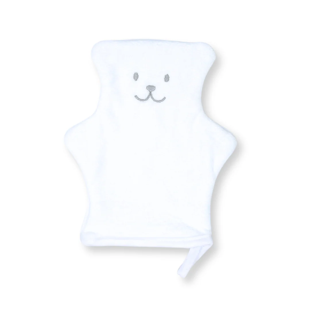 Si votre enfant adore son ourson thérapeutique, il craquera pour notre joli gant de toilette en forme d’ourson!