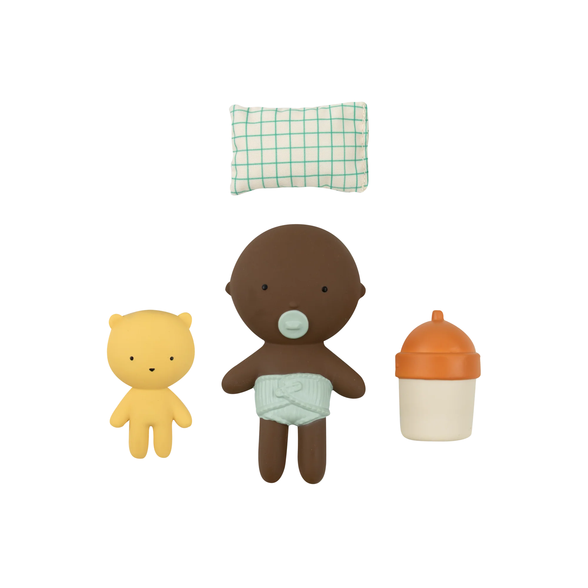 La famille Gommu s’agrandit, ou plutôt rétrécit ? Retrouvez Baby Gommu en format de poche ! Baby Gommu Amande est accompagné de son meilleur ami l’ourson, d’un biberon de lait et d’un oreiller moelleux pour la sieste. Tous ces jouets réunis dans un seul lit en carton pour de longues heures de jeu !