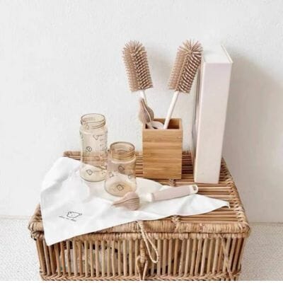 Équipé d’une grande brosse pour biberon et d’une petite pour les tétines, cet accessoire essentiel s’adapte à tous vos contenants. Sa conception en silicone garantit un nettoyage en profondeur sans abîmer les surfaces délicates des biberons de votre nouveau-né.