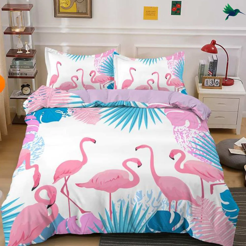 Achetez cette jolie Housse de couette Flamant rose pour une chambre à coucher tropicale.