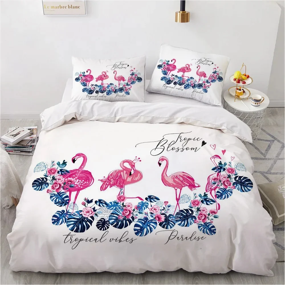 Transformez votre chambre en une oasis de style et d’exotisme avec notre Housse de Couette Flamant Rose Floral Tropical.