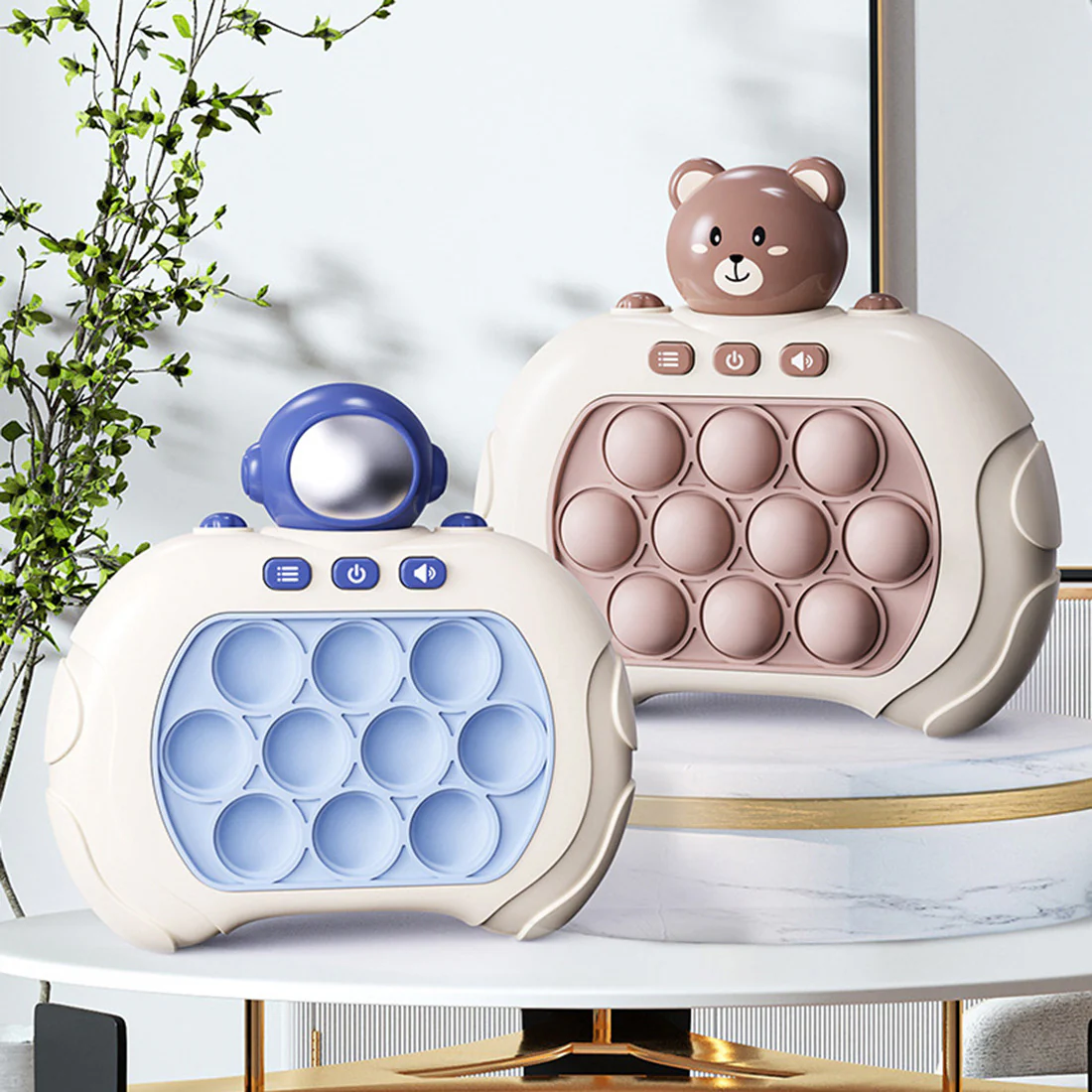 Un jeu de bubble pop classique et addictif rencontre un jeu d’arcade rapide ! Notre nouveau jouet portable est plus simple et plus amusant que la plupart des jouets Simon. Les enfants pratiquent la pensée positive, la coordination œil-main et l’entraînement cérébral avec des défis ludiques pleins de lumières et de sons qui favorisent le développement sensoriel.