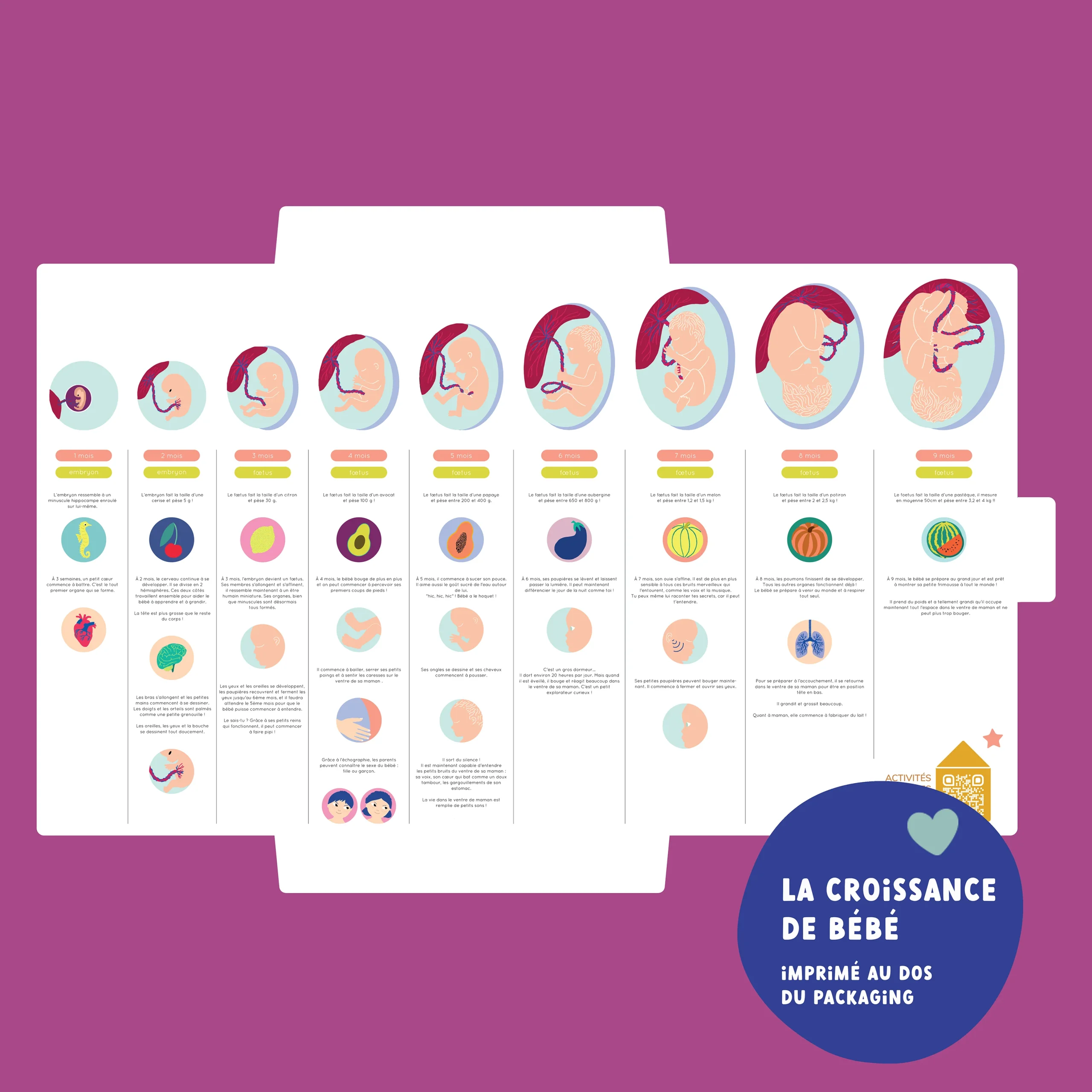 1 descriptif illustré de la croissance du bébé mois après mois.
