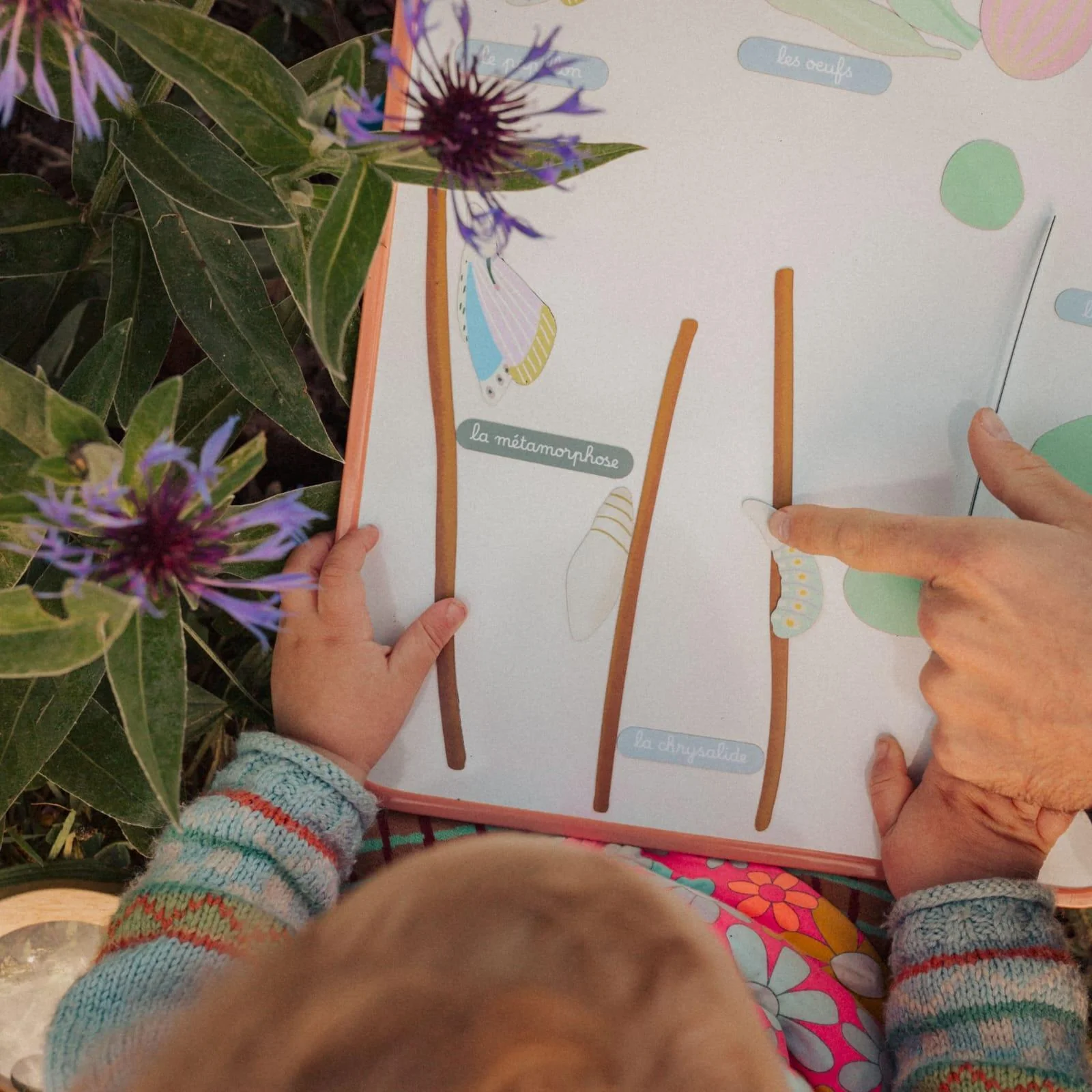 En manipulant les magnets, les enfants observent, apprennent et s’émerveillent devant la métamorphose du papillon.
