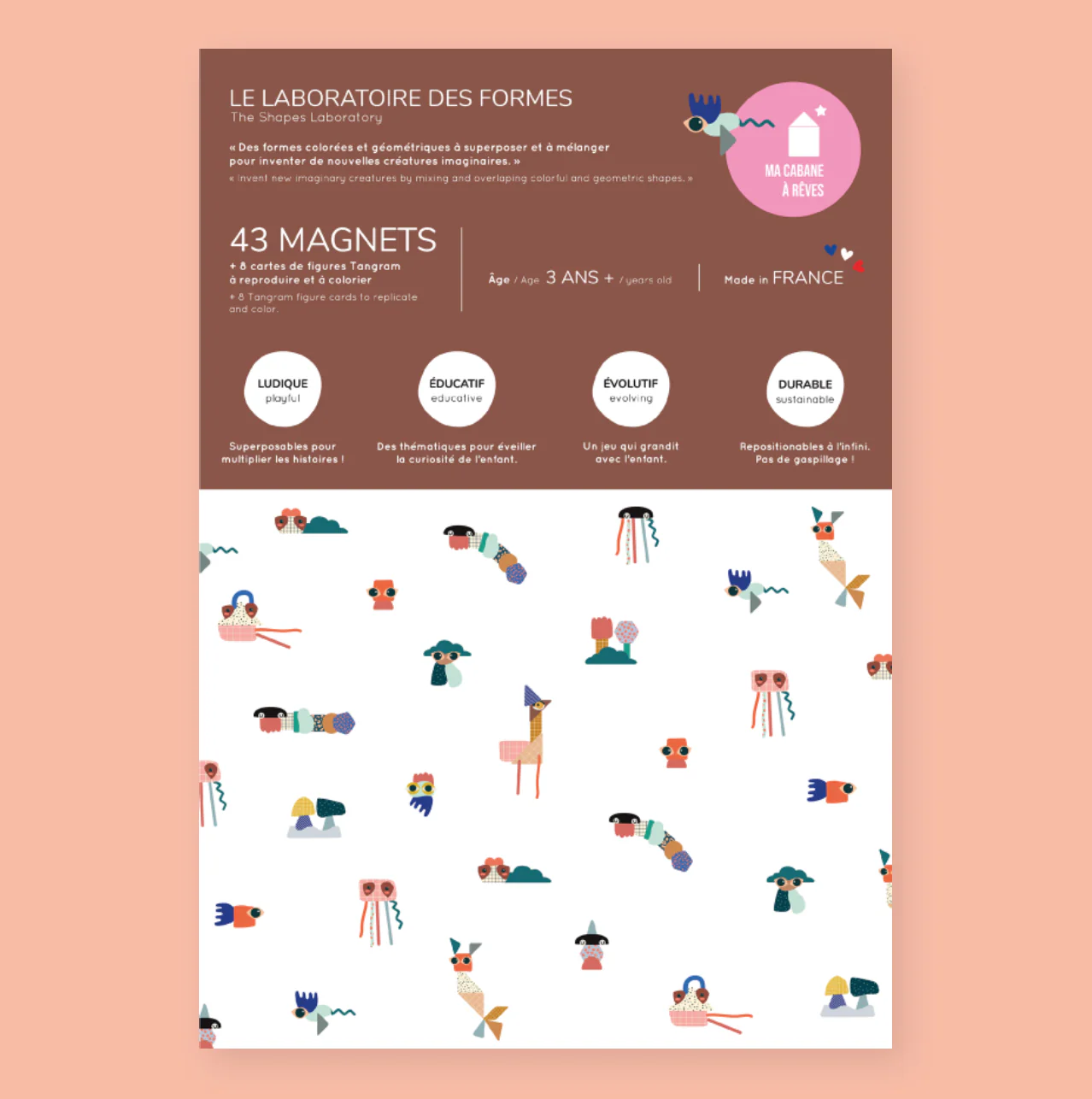 Des formes colorées et géométriques, à superposer et à mélanger pour inventer de toutes nouvelles créatures issues de l’imagination de votre enfant ! Ce jeu comprend également les pièces du Tangram.
