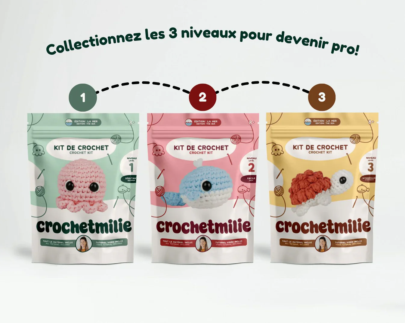 pour devenir pro! C’est comme ça que Crochetmilie a pensé ses kits. Chaque niveau t’invite à la progression via l’intégration de nouvelles techniques.