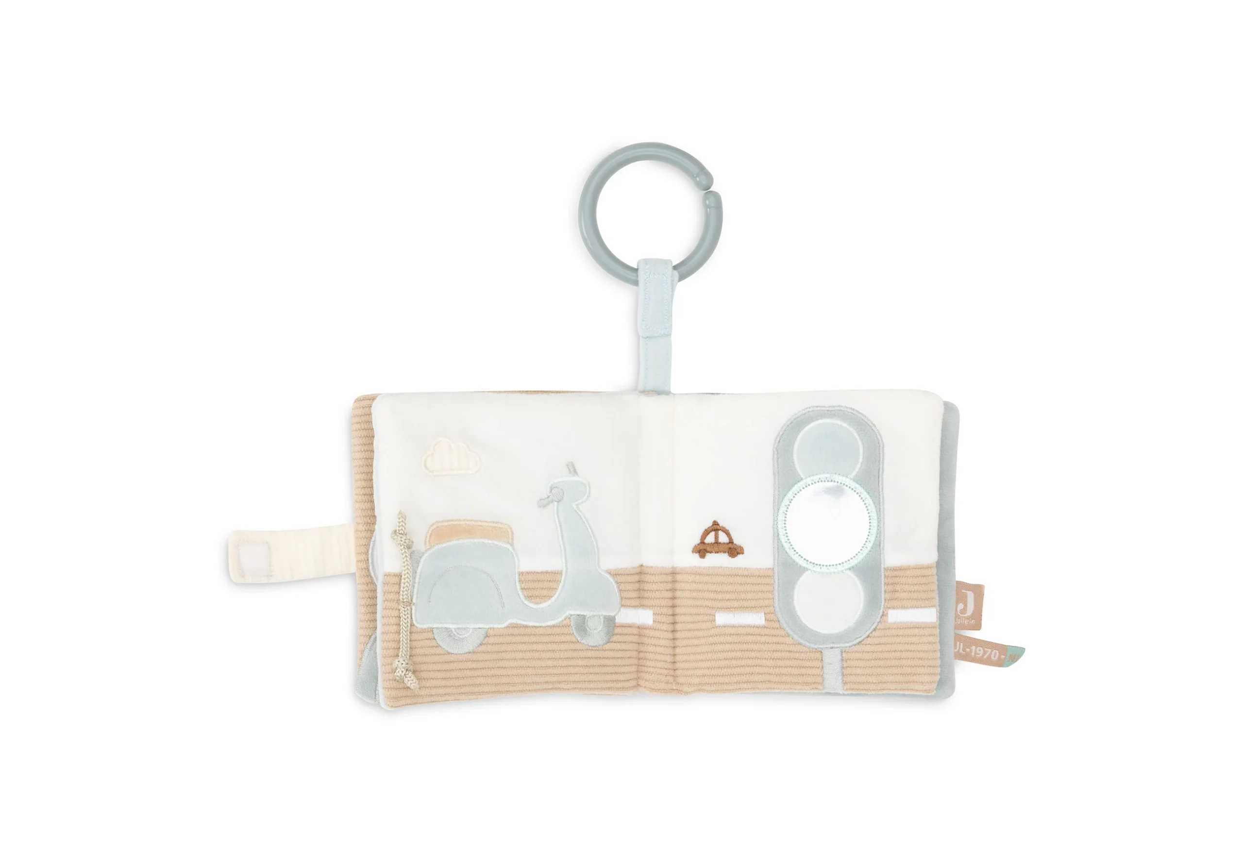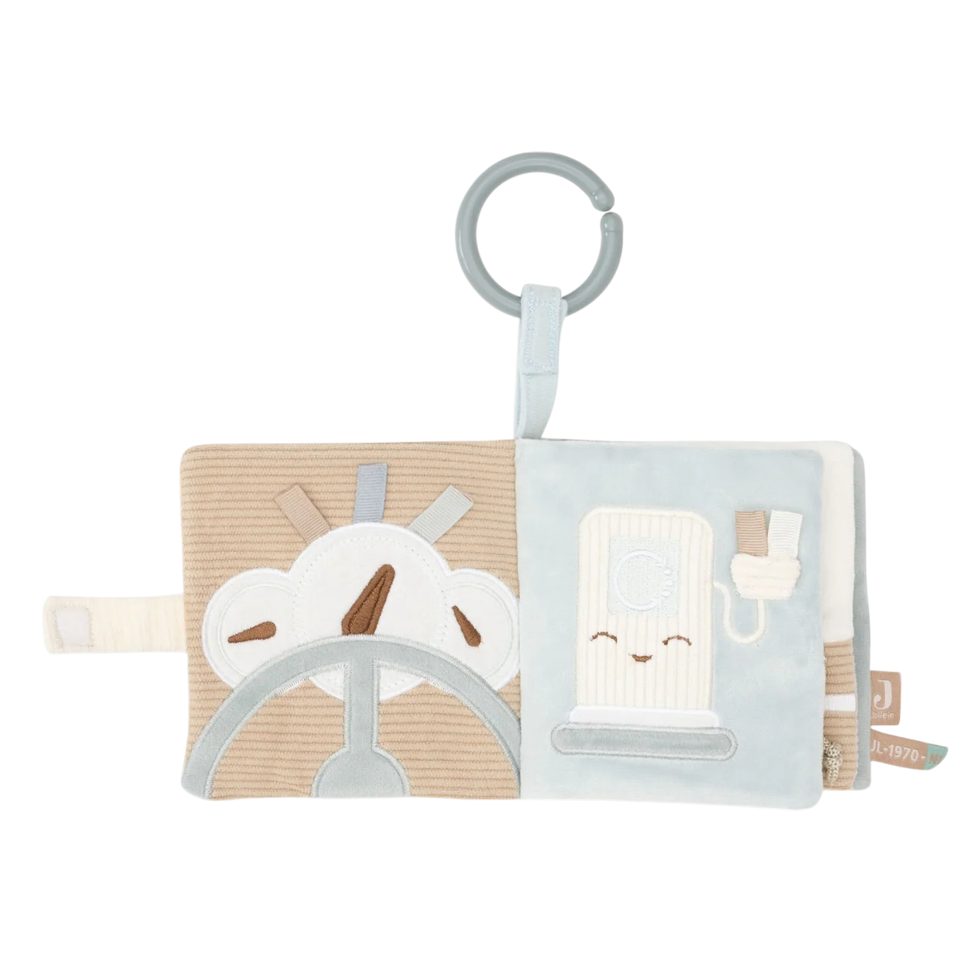 Explorez le monde avec ce carnet d’activités unique sur le thème « On The Go » ! Avec ses quatre pages de tissu côtelé super doux en Sea Green et Cloud Blue, ce livret est parfait pour les petites mains curieuses. Chaque page est pleine de surprises : des plis, des ficelles amusantes et de mignons petits miroirs en forme de feux de circulation. Le livret est accompagné d’une clé amusante qui émet un son de crépitement, pour davantage de divertissement. Ce livret d’activités stimule les sens de votre enfant et constitue des heures de plaisir, même en déplacement !