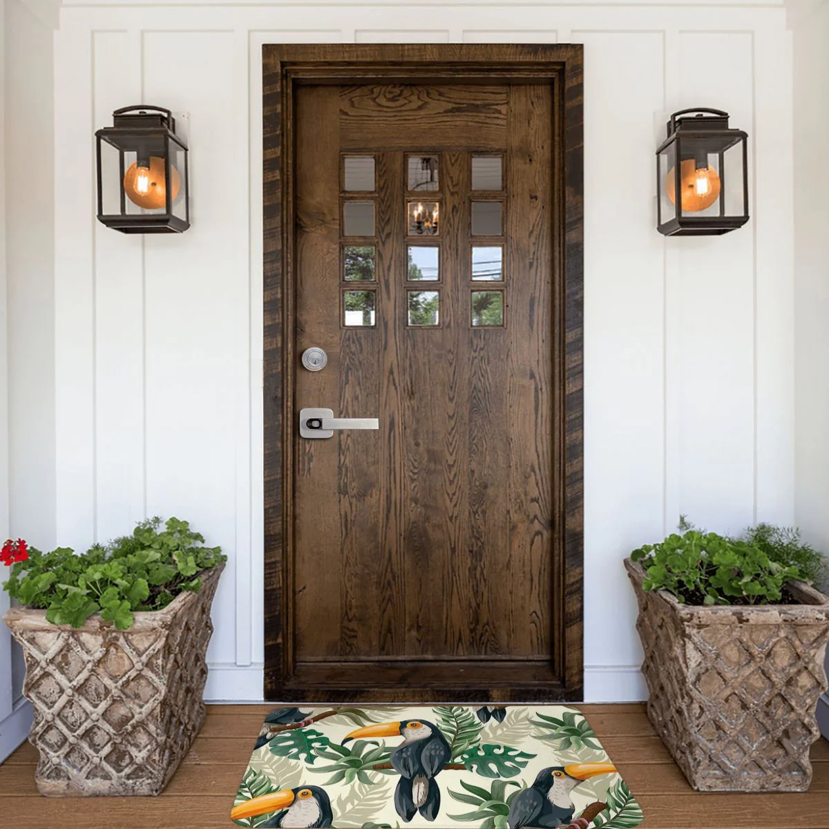Les toucans sont de beaux oiseaux grimpeurs se trouvant dans les forêts de l’Amérique du Sud. Invitez la nature chez vous avec ce paillasson à motif toucan. Placé au niveau de votre porte d’entrée, cet essuie-pied donne une invitation au voyage exotique. Sous forme rectangulaire, ce paillasson est adapté au revêtement de sol tel que le marbre ou le parquet. Il est absorbant et antidérapant.