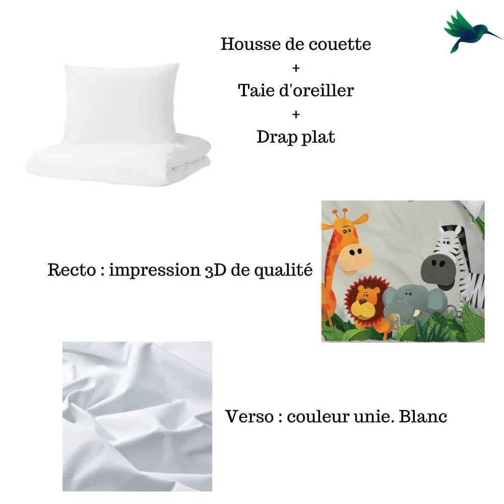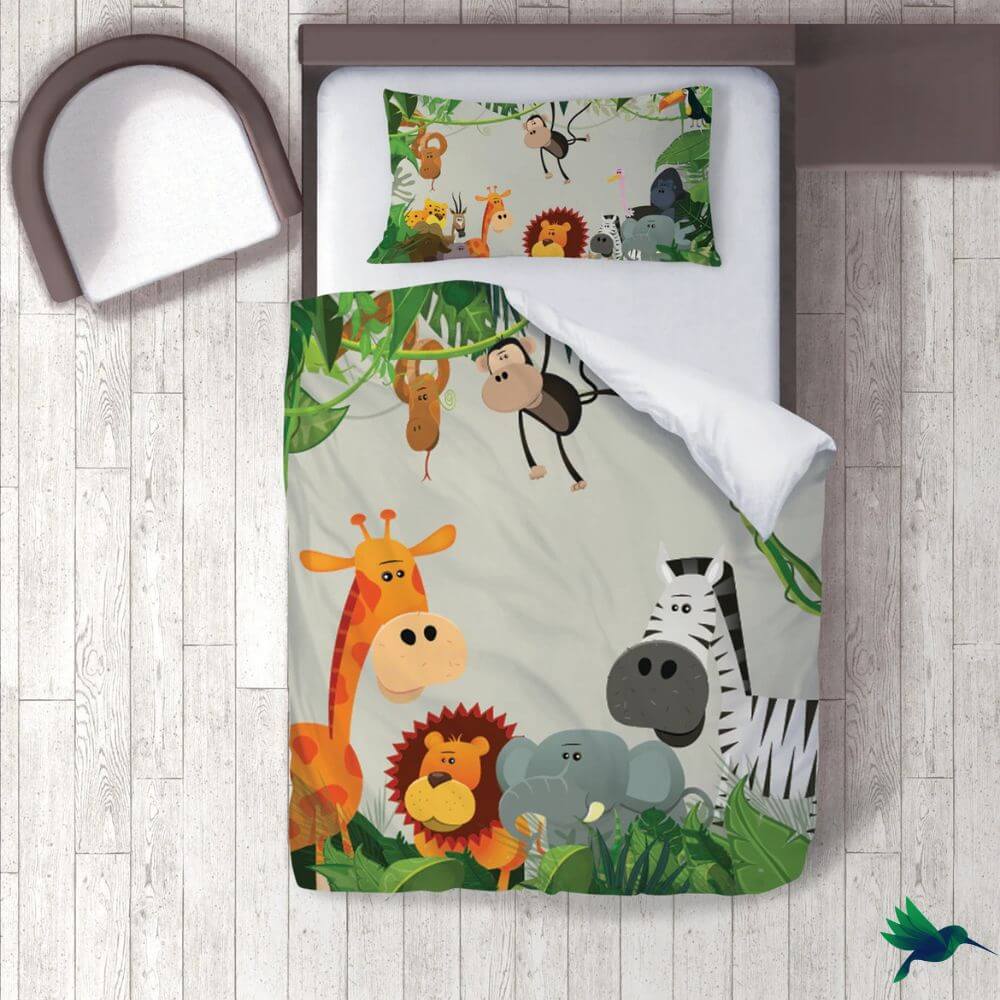 Cette Parure de lit motif Jungle Animaux sera idéale pour la chambre de votre Enfant.