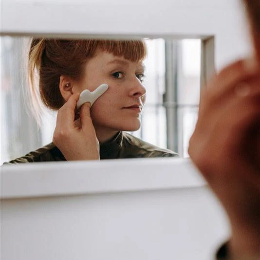 - Astuce: en été, mets ta pierre à gua sha au frigo! Pour un petit effet coup de fouet et pour resserrer les pores encore plus efficacement!