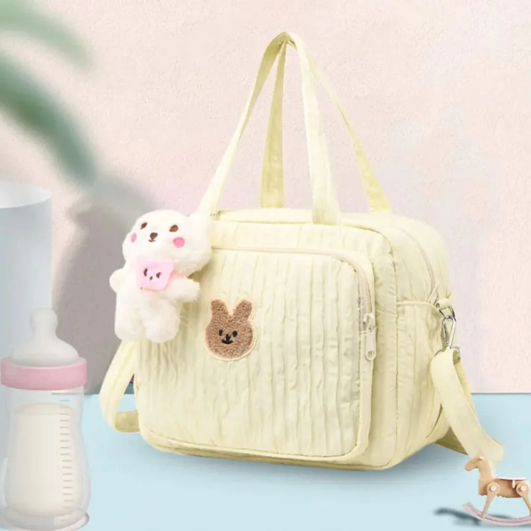 Fabriqué en tissu léger matelassé à la mode, le sac à langer KitBébé™ offre confort, durabilité et facilité d’utilisation, tout en arborant un motif adorable et tendance qui ne manquera pas d’attirer les regards.