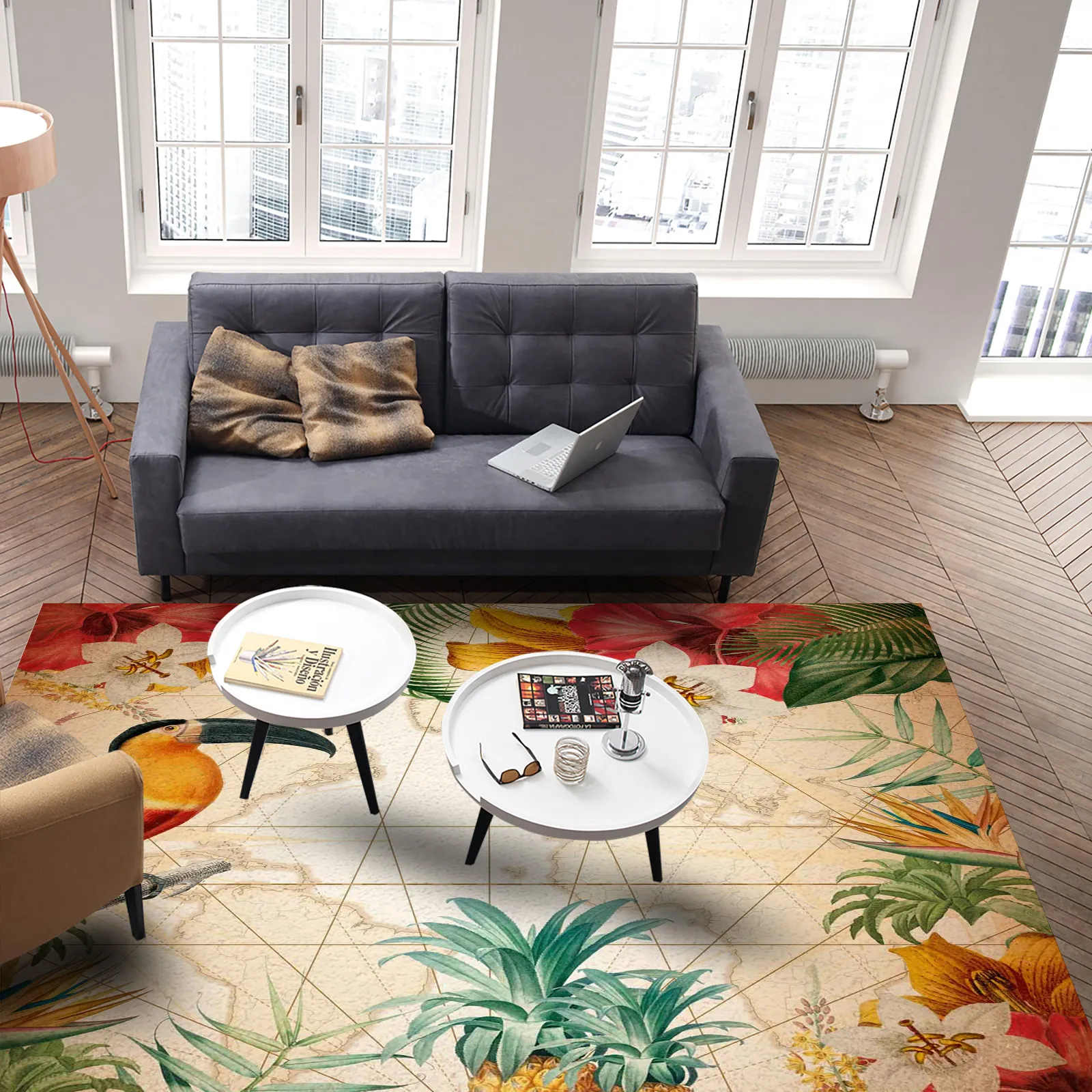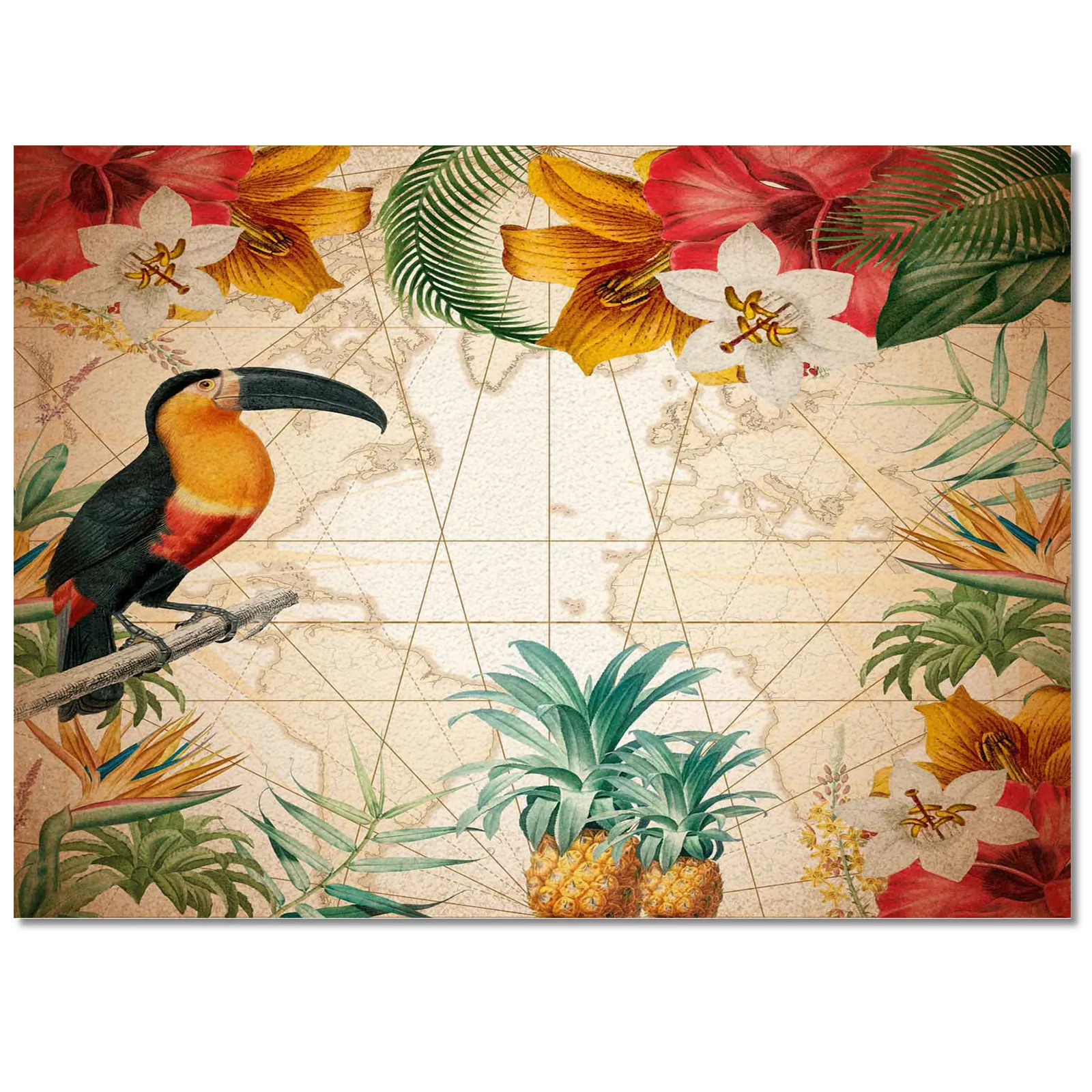 Transformez votre espace en un paradis tropical avec notre Tapis. Plongez dans une décoration dépaysante où le Toucan, l’ananas et les fleurs exotiques prennent vie sous vos pieds. Ce tapis vibrant capture l’esprit de l’aventure, ajoutant une touche de chaleur et de couleur à n’importe quelle pièce de votre maison.