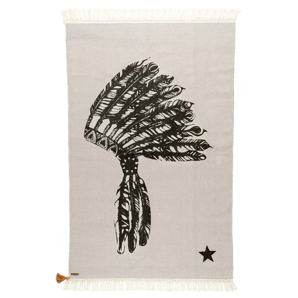 « Et vous n’y laisserez aucune plume » Un tapis pour les fans de western. Détails Dimensions L 150 x l 100cm Composition 100% coton