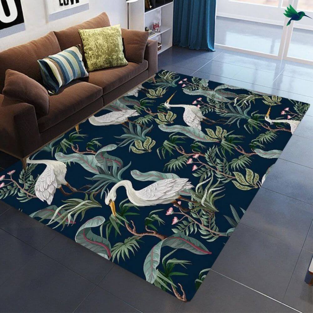 Faites de votre habitat un véritable cocon où vous aimez passer du temps. Le motif Jungle permet de faire entrer la Nature chez vous grâce à ces motifs et ces couleurs. Le vert est toujours la couleur prédominante afin de représenter la végétation luxuriante de ce milieu tropical. Vous retrouvez très bien ici ces plantes et ces arbres exotiques. De plus, sur ce modèle, il y a un motif de héron garde-bœufs. Cet oiseau échassier blanc des régions tropicales est très reconnaissable grâce à ses longues et fines pattes, son plumage blanc et son bec jaune.