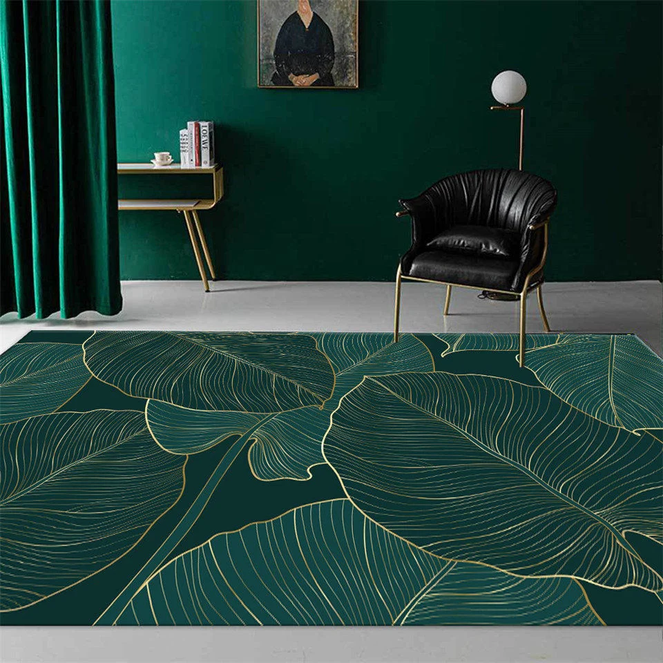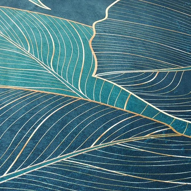 Le design réaliste des feuilles sur ce tapis lui confère un aspect authentique et captivant. Chaque détail est soigneusement représenté, vous donnant l’impression d’être transporté au cœur d’une jungle exotique. Les couleurs apaisantes des tons vert-bleu se marient harmonieusement, créant une atmosphère apaisante et relaxante.