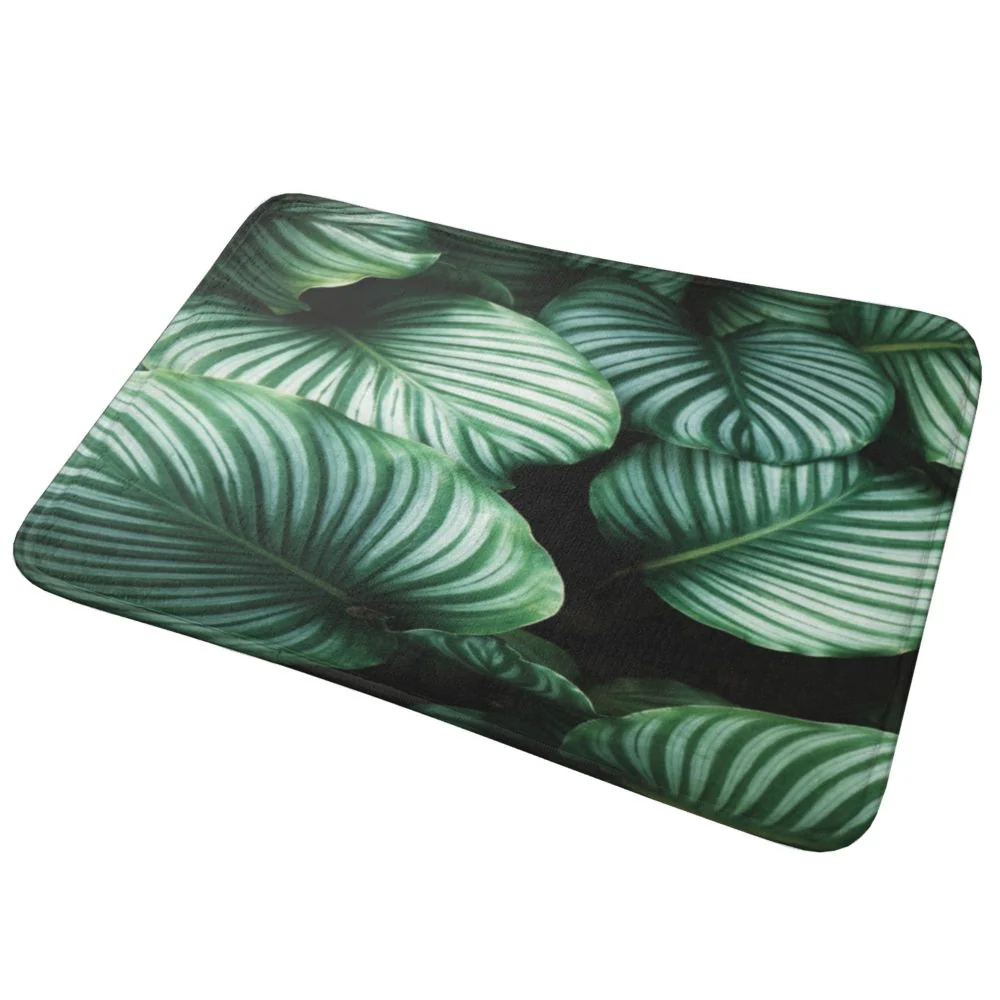 Découvrez notre magnifique tapis motif feuillage, orné d’une grande feuille verte et blanche qui apportera une touche de nature et de fraîcheur à votre intérieur.