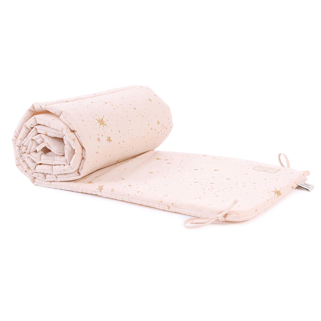 Ce tour de lit blanc matelassé, doux et confortable créera un cocon rassurant pour votre bébé en coupant les courants d’air, amenuisant les bruits environnants et empêchant les chocs contre les barreaux du lit. Il sera le garant de nuits paisibles et sécurisées.